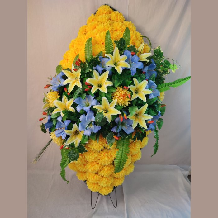 Высота указана без ножки. В наших офисах представлен ассортимент венков на любой вкус.